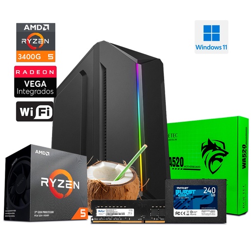 PC COQUITO - Ryzen 5 3400G - SSD 240GB - 8GB DDR4 - A520 - CUBE PRO + 600W