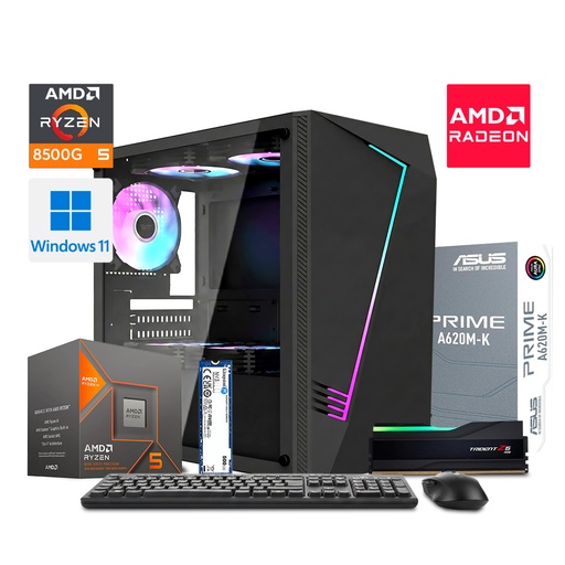 PC Gaming 8000S, Ryzen 5 8500G, A620M-K, 16GB DDR5 Trident Z5 RGB, NV3 500GB M.2, Case AL390, PSU 800W, Teclado y Mouse Wireless, Windows 11 Pro