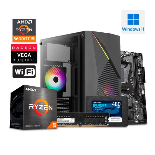PC Gaming CoolRaider - Ryzen 5 5600GT - SSD 480GB - 8GB DDR4 - A520 - Case Raider Mini + 600W
