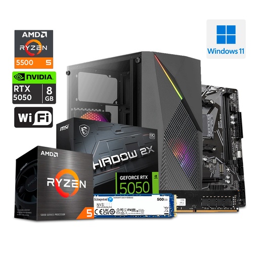 PC Gaming MINIRTX - Ryzen 5 5500 / RTX 5050 8GB / M.2 500GB / 16GB DDR4 / A520 / Case Raider Mini + 600W