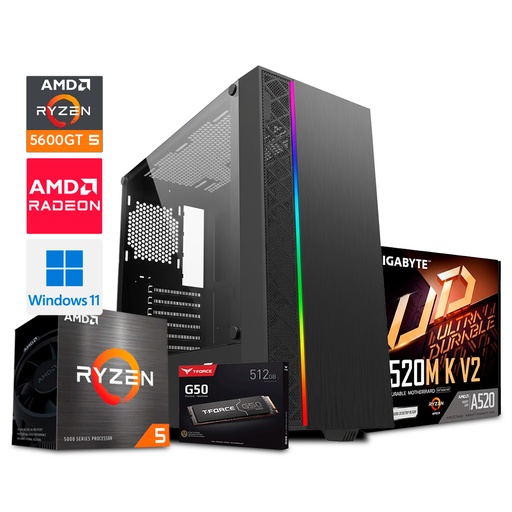 PC ZEN G Basic, Ryzen 5 5600GT, A520M K V2, 16GB DDR4 2x8GB, T-Force G50 512GB M.2, Case Oberon, 800w, Windows 11 Pro